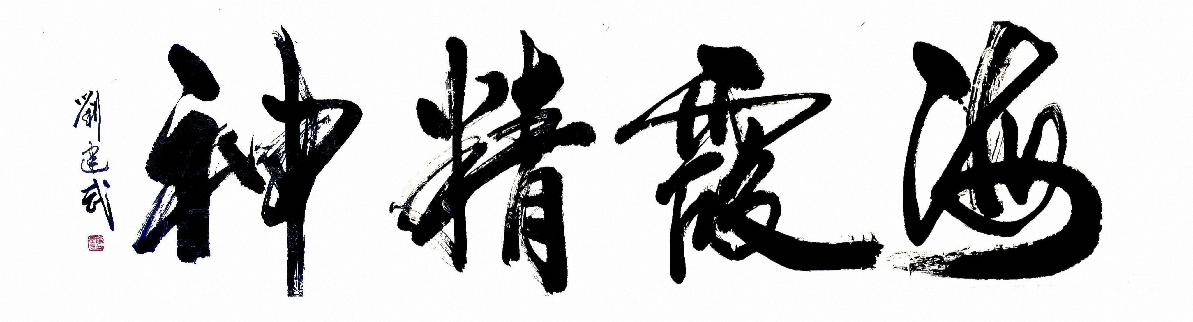 刘建武创作的众多作品中,有一幅字别有气韵。那是洞头先锋女子民兵连成立60周年之际,他应邀为文艺晚会题字。刘建武先后用隶书、楷书下笔,都不满意,再三思考后以行草作书。细观之,“海霞精神”四个大字,笔锋间有海风徐徐、海浪滔滔,尤其是“精”字和“神”字的运笔,清新俊逸,似飘扬的发丝,又如飞溅的浪花,用艺术之力彰显海防女民兵“爱岛尚武、励志奉献”的精神与“中华儿女多奇志,不爱红装爱武装”的风采。
